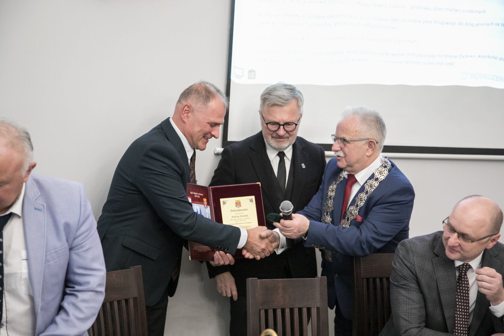 Na zakończenie sesji swoją dotychczasową pracę na rzecz miasta podsumował były przewodniczący Rady Miejskiej Zbigniew Grosz, który był radnym przez 21 lat, ale ze względów zdrowotnych postanowił nie kandydować w najbliższych wyborach. Jego podziękowania wszyscy zebrani podsumowali oklaskami na stojąco.