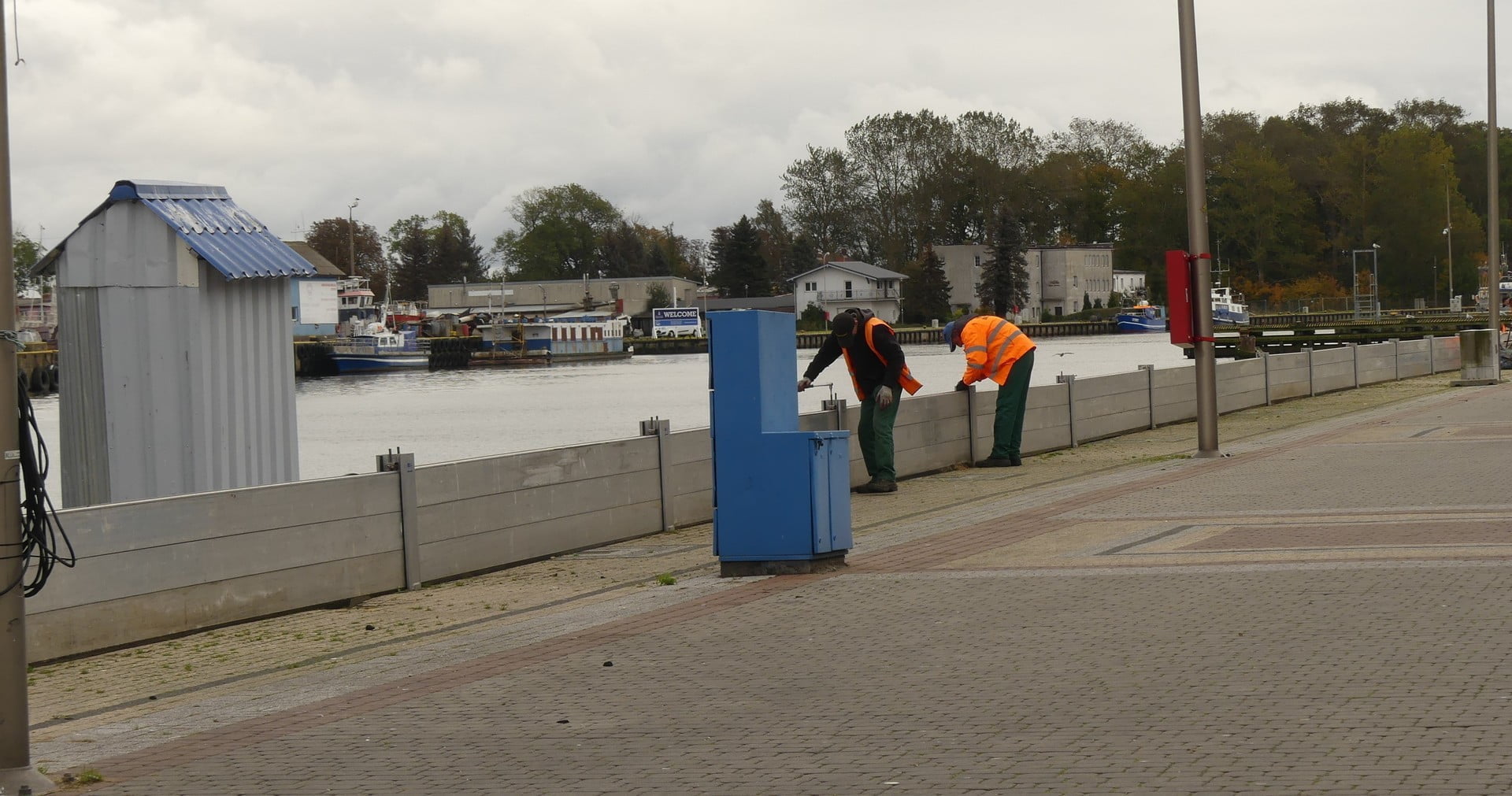 Od wielu lat o tej porze przed rozpoczęciem sezonu sztormów, na obu brzegach rzeki Wieprzy w Darłówku miasto montuje mobilny system zapór przeciwpowodziowych.