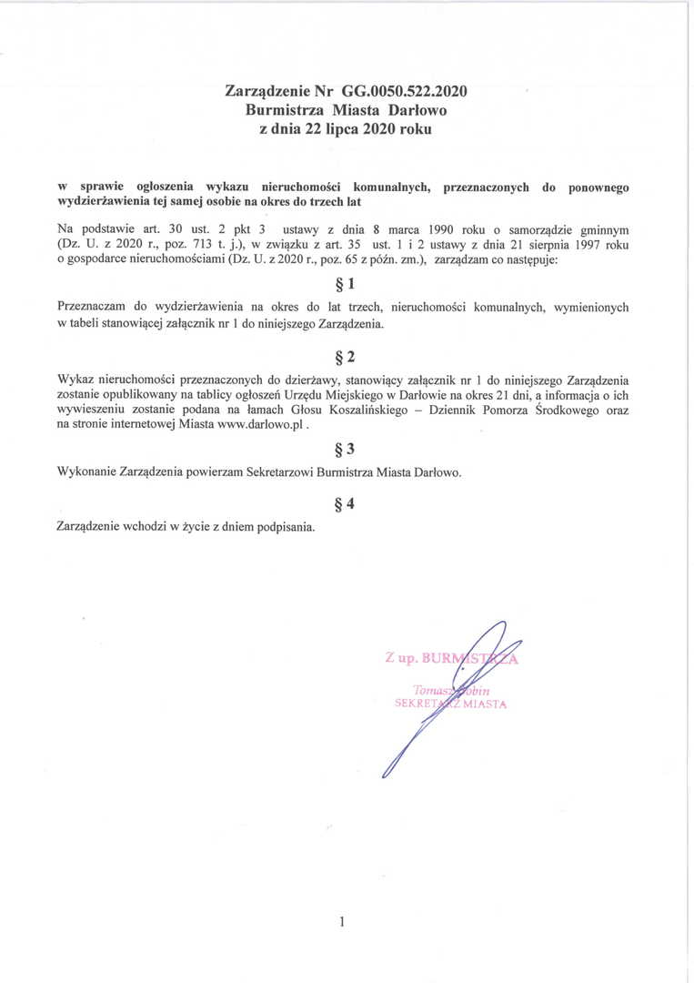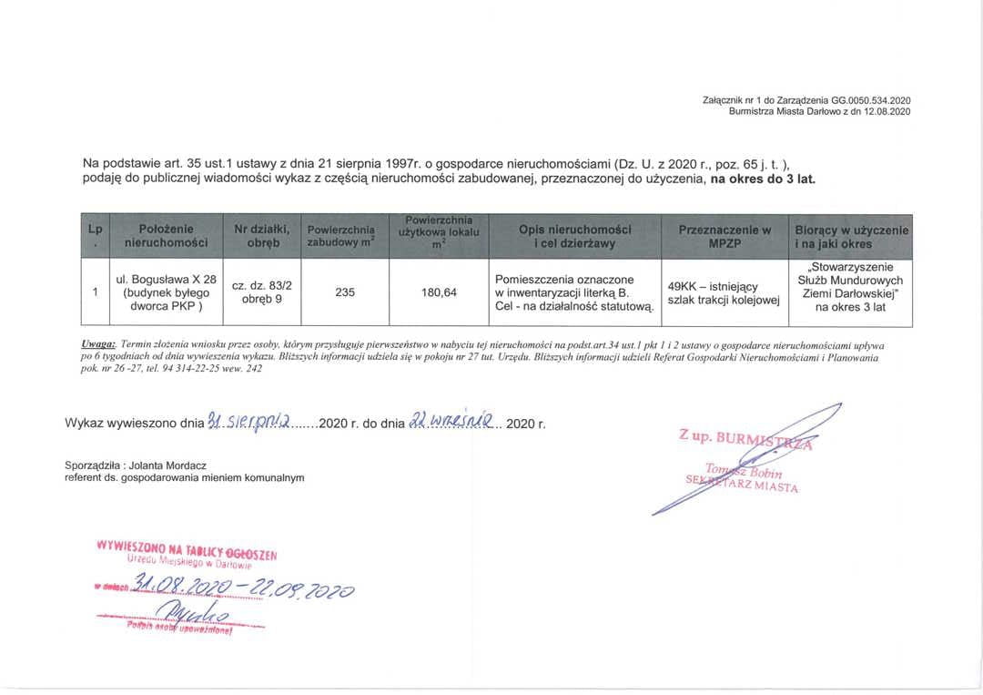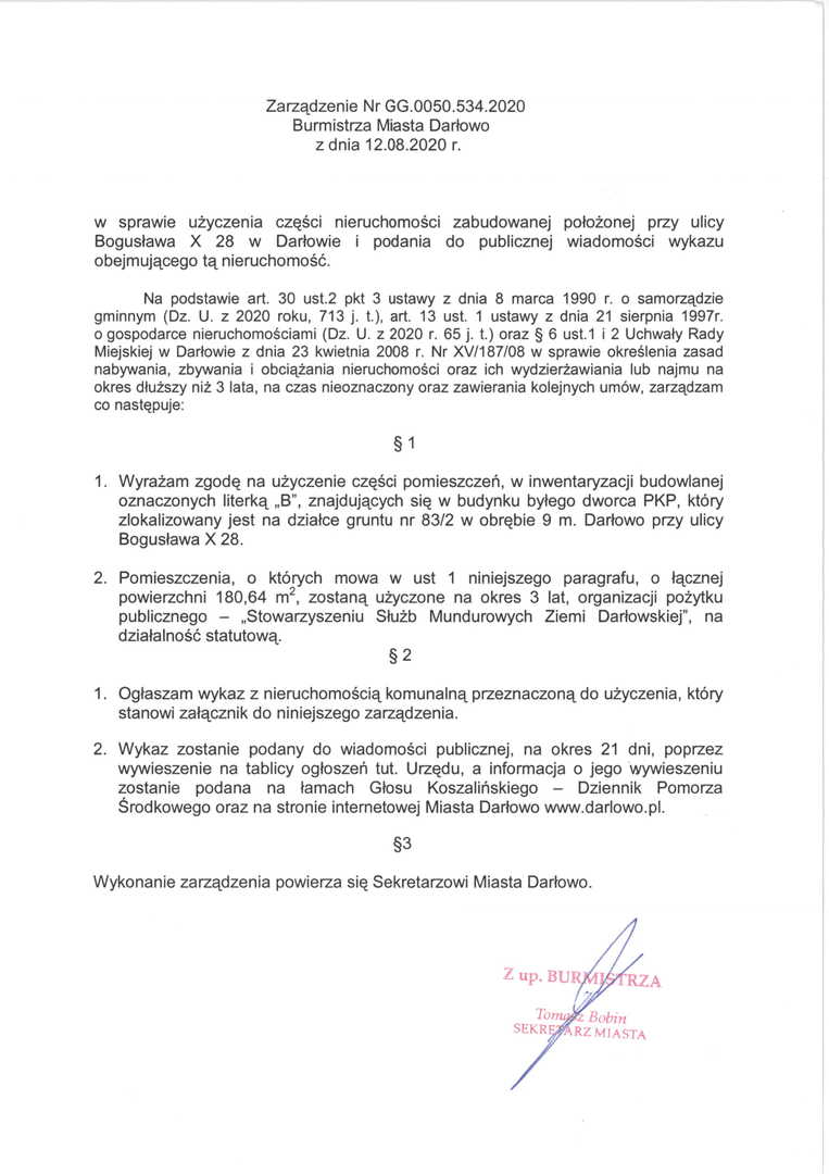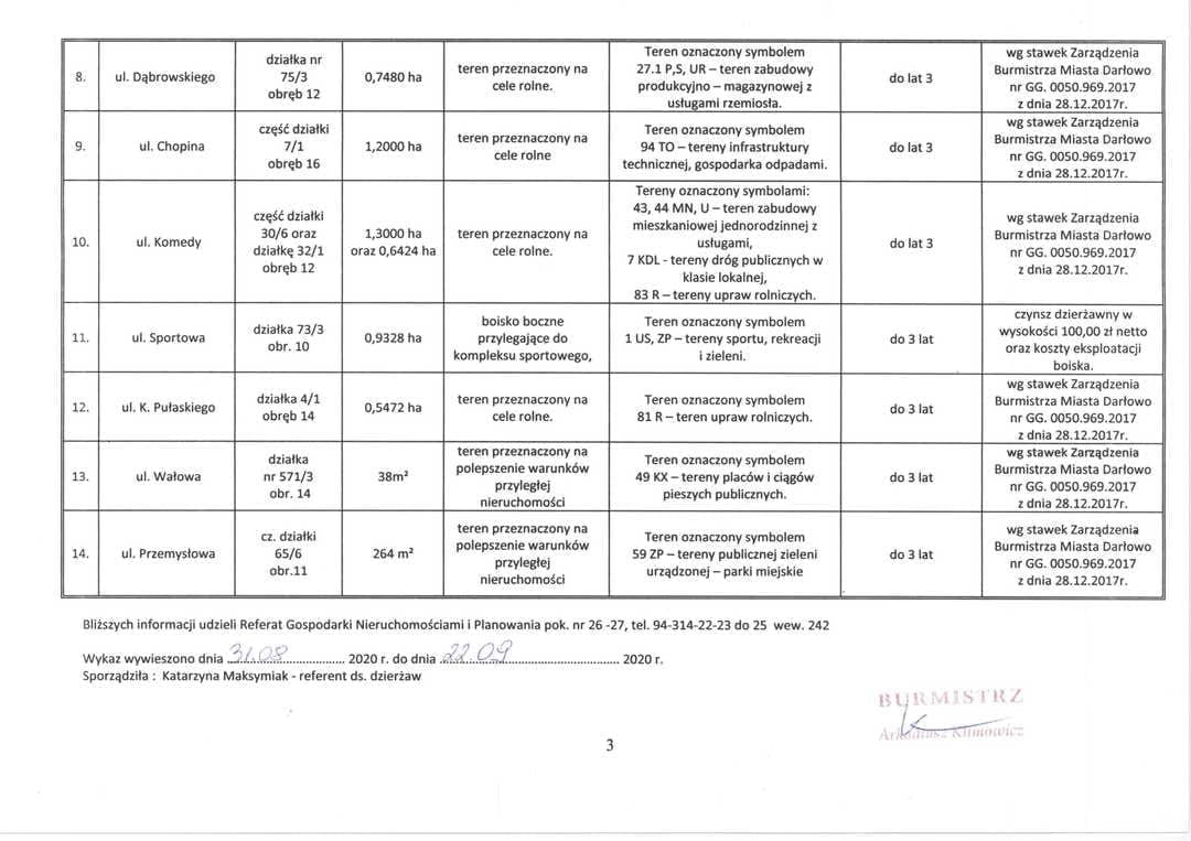 Zarządzenia Burmistrza Miasta Darłowo ws. dzierżaw i użyczenia