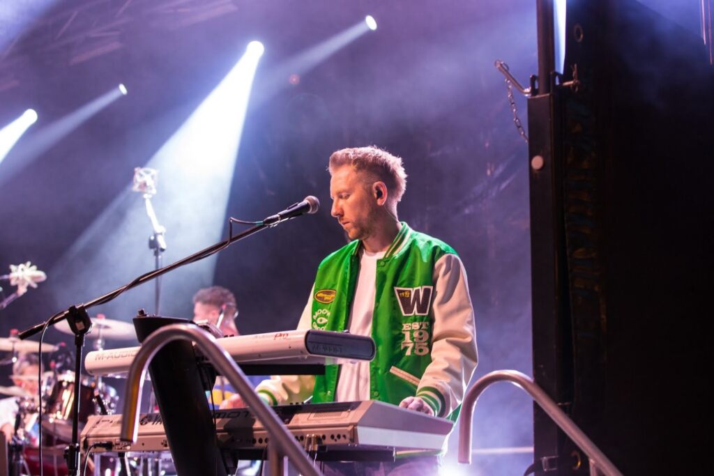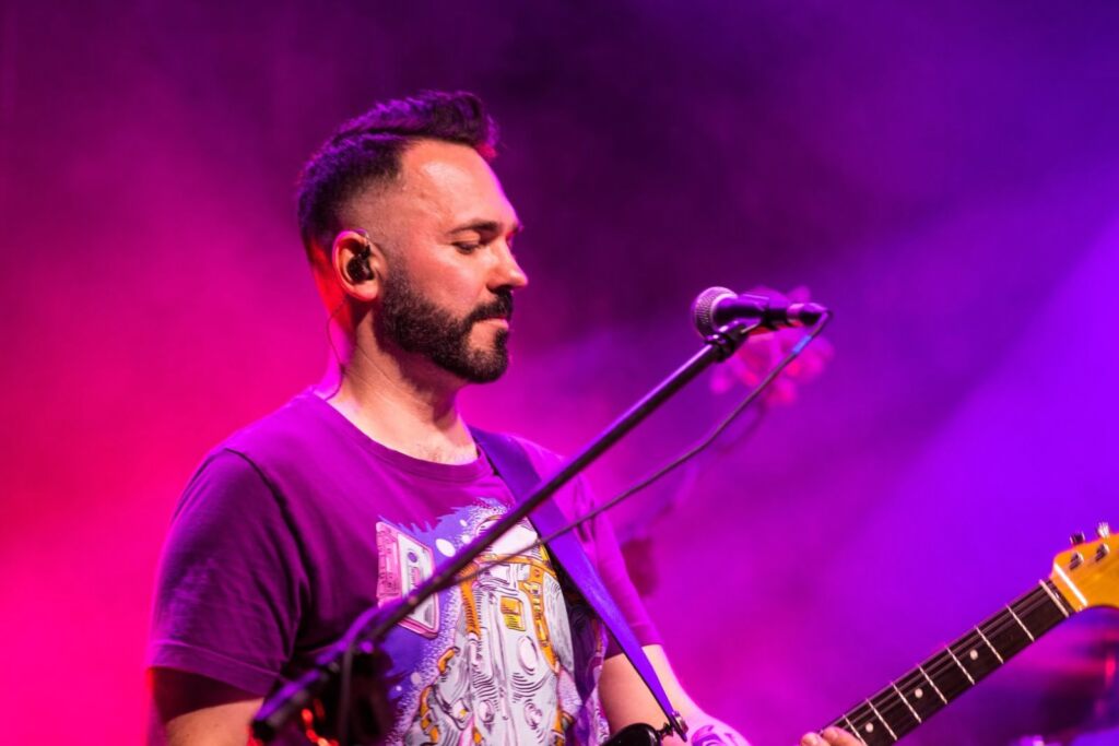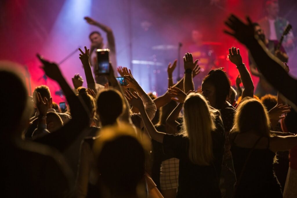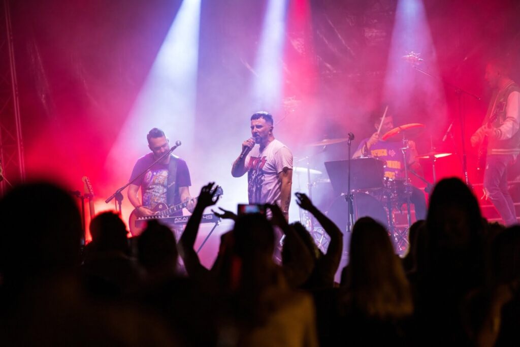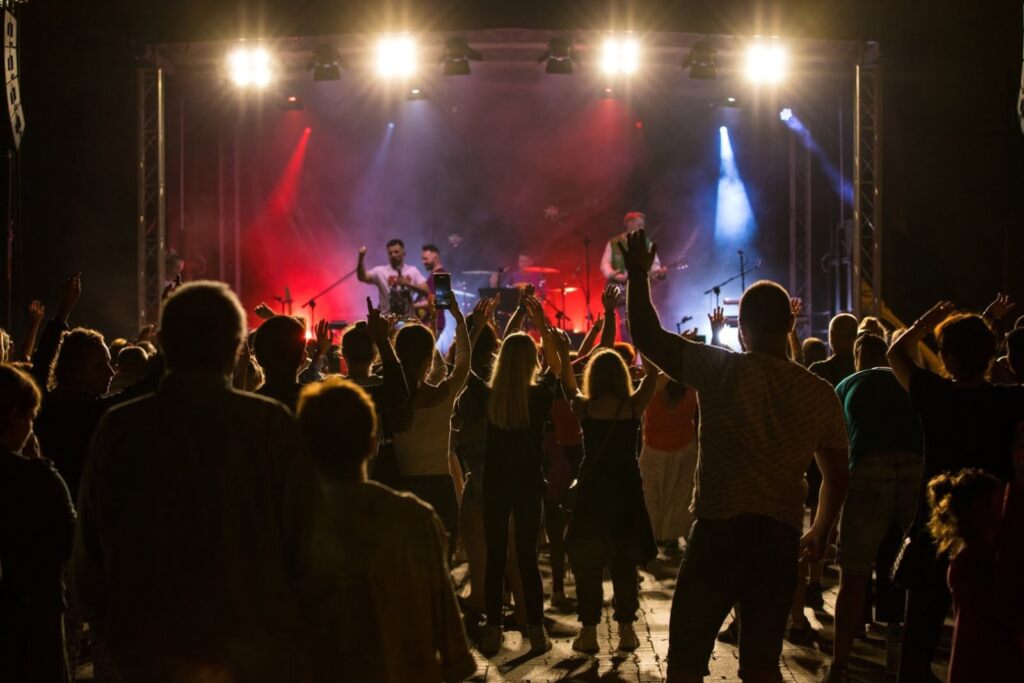 Zespół muzyczny wykonuje koncert na żywo przed publicznością