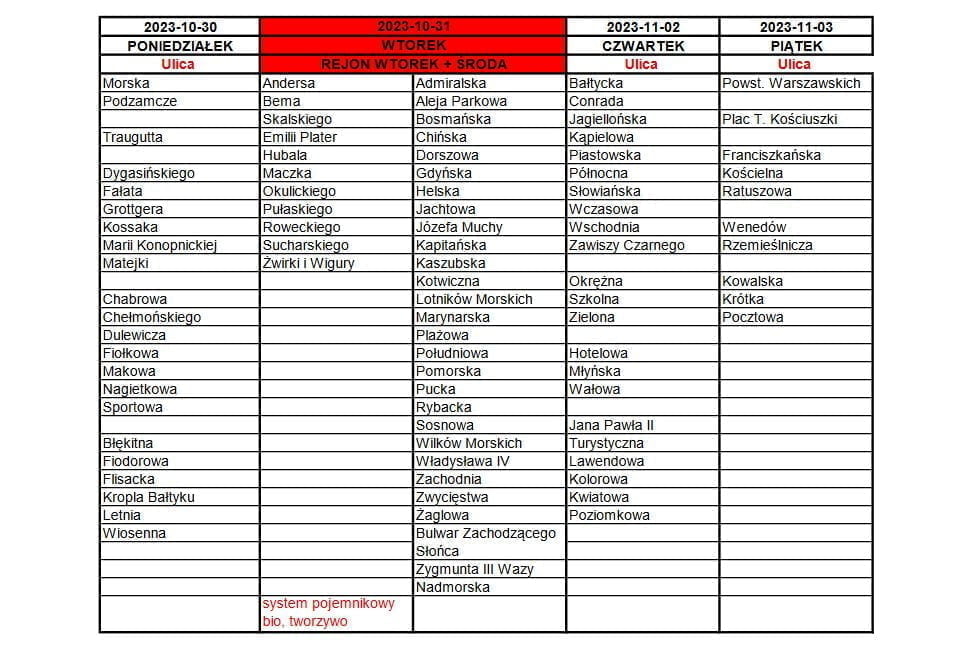 - Zmiana odbiorów odpadów w związku z 1 listopada. Rejon wtorkowy i środowy odbierany będzie we wtorek 31.10.2023 r.